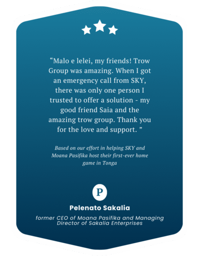 Awarded to TROW for demonstrating innovation, strategic thinking and a track record of sustainable growth. Understanding and participating in the modern economy requires business acumen whilst creating real opportunities and jobs for our Pacific people.