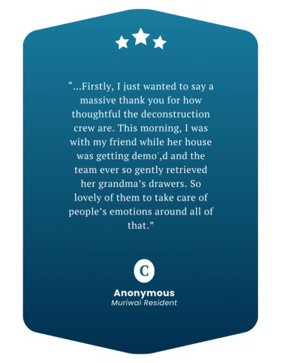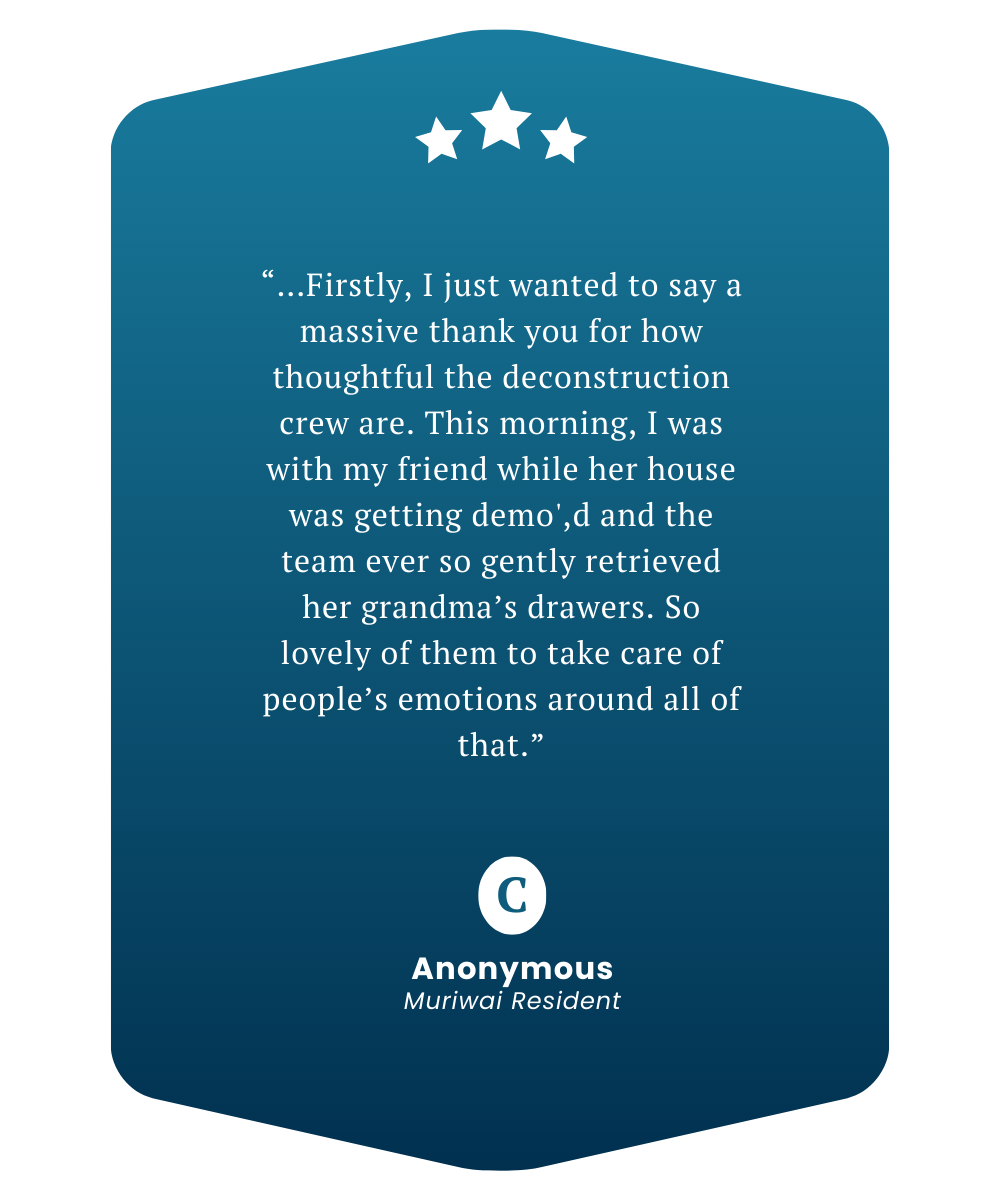 And today, we’re proud to share our vision brought to life, pioneering the idea of a sustainable marketplace designed specifically for our deconstruction mahi, bringing recycled materials, furniture, and salvage goods to our community in one purpose-built Marketplace.