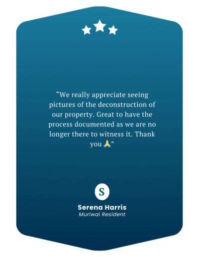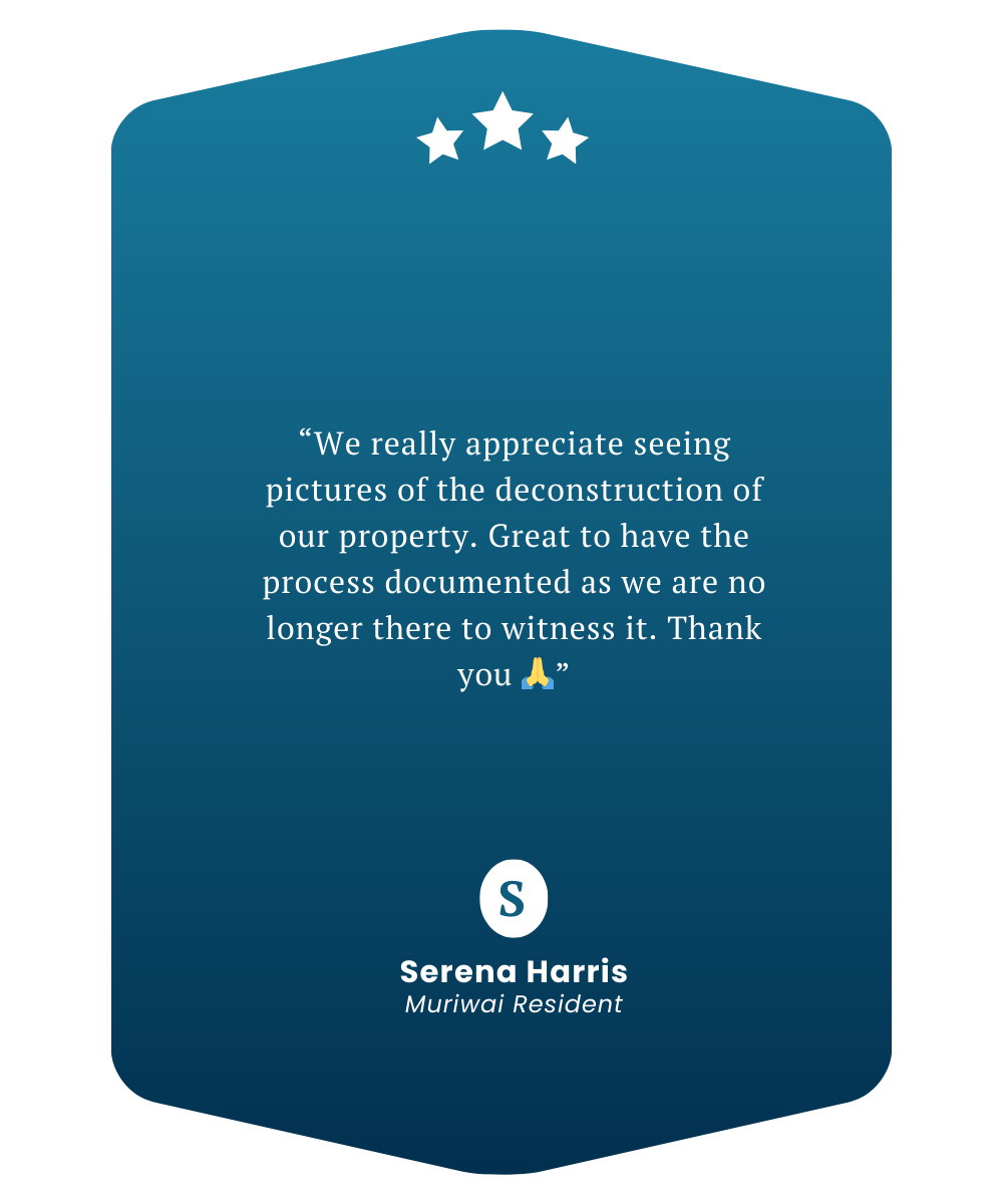 Sustainability is at the heart of everything we do. We believe that the success of our business and the success of our clients depend on the long-term viability of the environments, communities, and economies we work within. We are committed to reducing our environmental impact by integrating sustainable practices into every part of our operations, from on-site processes to procurement decisions. 80% Diversion of salvaged materials from EVERY project – is our MINIMUM, ensuring they are reused in meaningful ways across New Zealand and the Pacific Islands. Our teams take care to prevent waste through proper handling, storage, and protection of materials, maximising their potential for reuse and recycling.